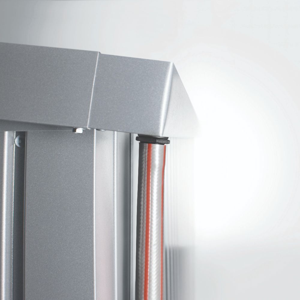 A szerszámos ház színében készült két függőleges rögzítősín kerül a külső falhoz rögzítésre és a virágládák a tetszőleges magasságban helyezhetőek el. Műanyagbetétek az egyszerű beültetéshez, a szállítási tartalom részei.
