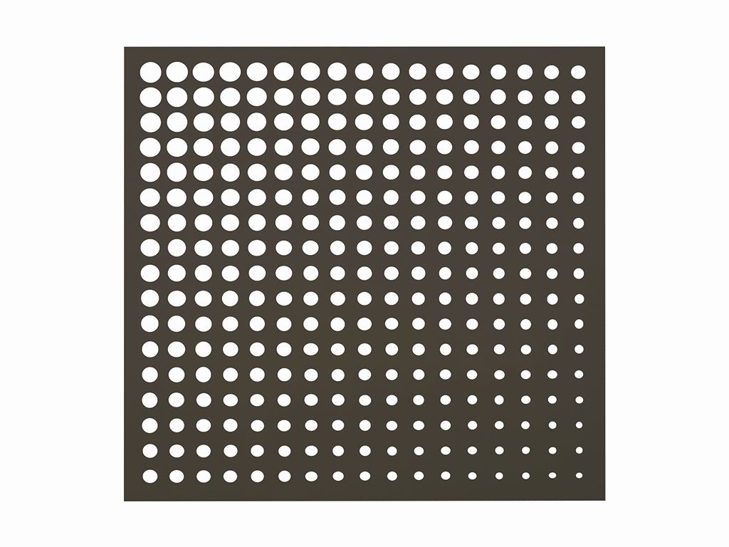 - A fokozatosan csökkenő átmérőjű, kör formájú apró lyukak révén eredeti fény- és árnyhatások hozhatók létre