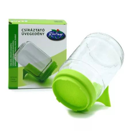 Üveg rácsavarható kitámasztó perforált műanyag tetővel csíranövények egyszerű neveléséhez.