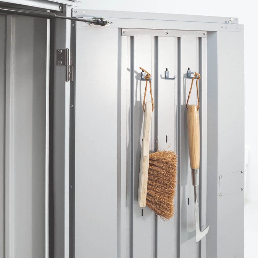A tűzihorganyzott, porszórt acéllemezből készült szerkezet ellenáll az esőnek, hónak, napsütésnek és rozsdának. A dupla szárnyas ajtó megkönnyíti a hozzáférést, a hengerzáras rendszer pedig védi a tárolt tárgyakat a lopás ellen. A letisztult dizájnnak és a választható színeknek köszönhetően a Minigarázs tökéletesen illeszkedik modern és klasszikus kertekbe is.