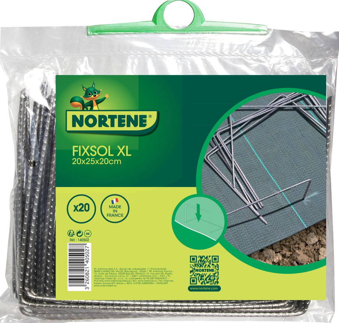 Ezek a fém kapcsok a talajon elhelyezett talajtakarók, fóliák, vakondhálók rögzítésére szolgálnak. A Fixsol XL kapcsok szélesek és a talajba szúrás után tökéletesen megakadályozzák a rögzített anyag elmozdulását.